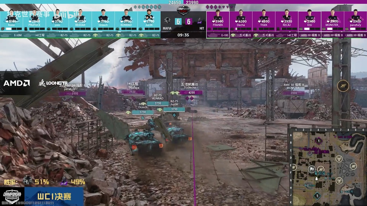 在这决定冠军归属的最终战场上,MAFIA与HIT AND RUN均已倾尽所有,战术、操作、意志力都经受着终极考验。在激烈的交火中,MAFIA抓住了对方140工程的细小走位失误,失去140工程的鼓舞加成后,AMX50福熙B被延长的长装填真空期成为了HIT AND RUN整个战术体系中的“阿喀琉斯之踵”。MAFIA立即发现了这一命门,凭借更胜一筹的集火效率和临场决策,成功遏制了HIT AND RUN弹夹体系的第二轮攻势!