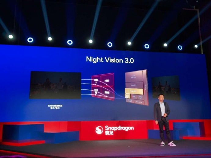 当用户录制夜景视频时,骁龙平台会启动名为Night Vision 3.0的AI算法:先由ISP+AI共同识别场景主体,确保对焦准确,随后拍摄多张不同曝光的帧并进行融合,逐步降低噪点,最后通过多帧HDR合成增强亮度和细节,拍出媲美大底传感器的暗光照片。