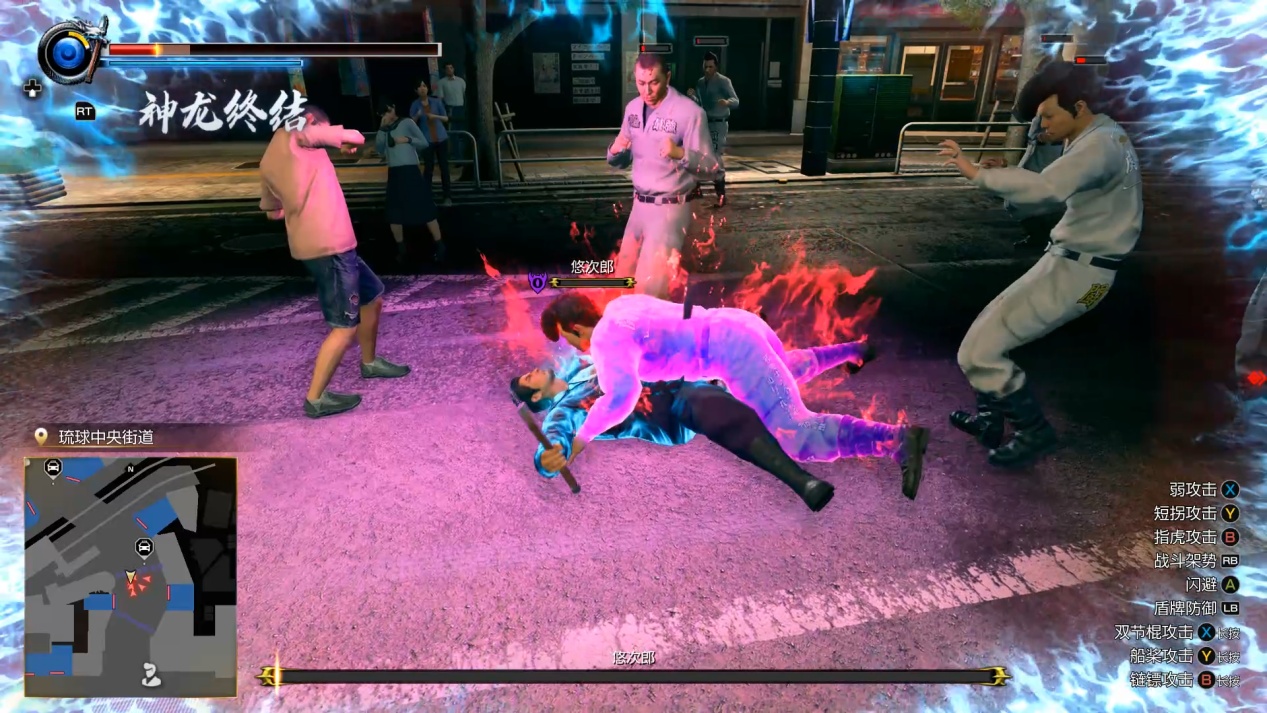 在战斗方面,《如龙极3》改动了原版里敌人长期防御龟缩,主角打架刮痧的设计。游戏加入了一个新的流派——琉球武术,战斗风格是用船桨,双截棍、锁镰、指虎等琉球传统武器干架,功能性拉满。破防、单体、群攻一流派全部拿捏,几乎可以适用所有场合,伤害也相当不俗,有点轮椅的味道。
